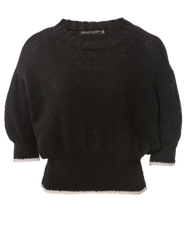 Get an instantly cool, laid-back look with this Lurdes Bergada crop jumper. Crafted in a lightweight cotton blend, this transitional knit boasts a round neckline, short puffed sleeves, rib-knit trims and a cropped silhouette. Contrast knit details at the cuffs and hem complete the look.