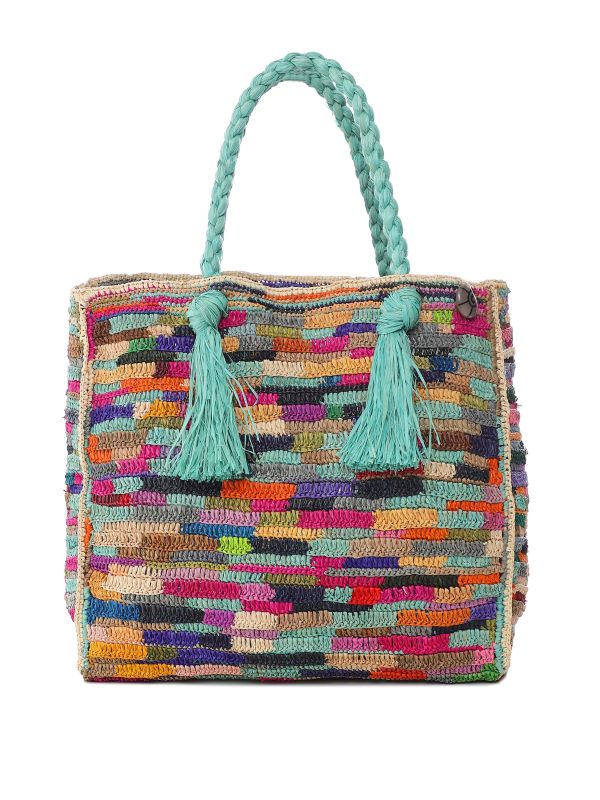 The Ma.Clau Ary shoulder bag is a summer essential. Crafted from raffia and cut to a square shape, this shoulder bag showcases multicoloured rectangular patterns, braided top handles, large tassel details and the Ma.Clau shell charm. With its roomy design and large internal pocket, you'll take it everywhere this season.