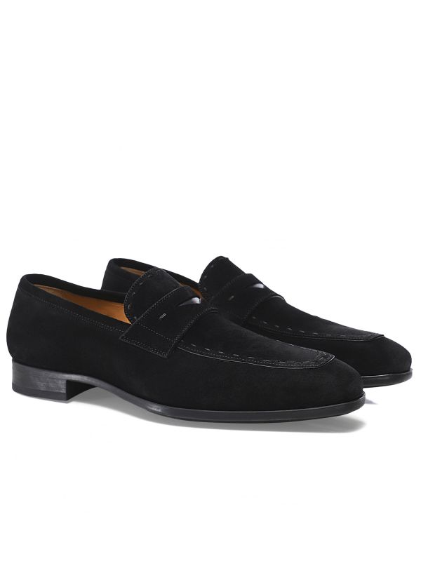 The elegant Magnanni penny loafers are the perfect option for smart casual occasions. Lovingly handcrafted in Spain in premium buttersoft suede, the black loafers exude superiority. Featuring a round toe and apron front, stitched heel counter and traditional penny strap, whilst the rubber outsole provides exceptional non-slip traction.