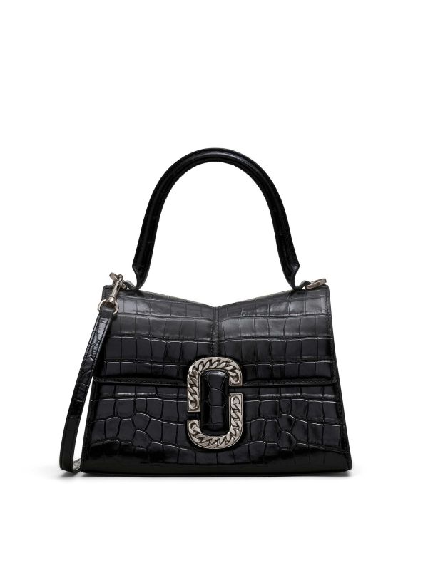 The Marc Jacobs croc-embossed St. Marc bag is a glossy and stylish accessory. Designed with an "M" shape, it features a signature hardware closure to the front, a top handle and removable leather crossbody strap. Inside, it boasts two card slots to ensure organisation. Wear it with or without the strap depending on your plans for the day.