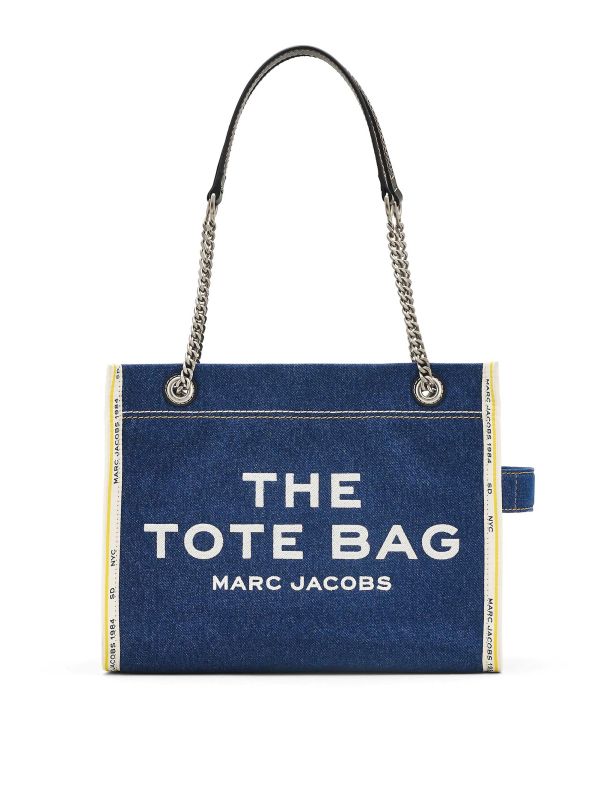 Discover The Denim Chain Medium Tote Bag, another iconic silhouette from Marc Jacobs. This medium-sized Marc Jacobs tote bag is constructed in denim, embroidered with the label's signature branding.