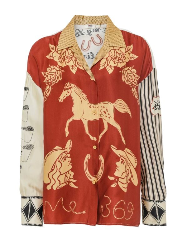 The Me369 Parker Rodeo Collar Shirt is a button down style featuring the brand's vibrant rodeo print. Crafted from viscose, this sleek Me369 shirt has classic details with a collar, buttons and long sleeves. It stands out with a mix of prints, great for adding pattern and colour to your looks. Wear it with trousers or layer it over a dress.