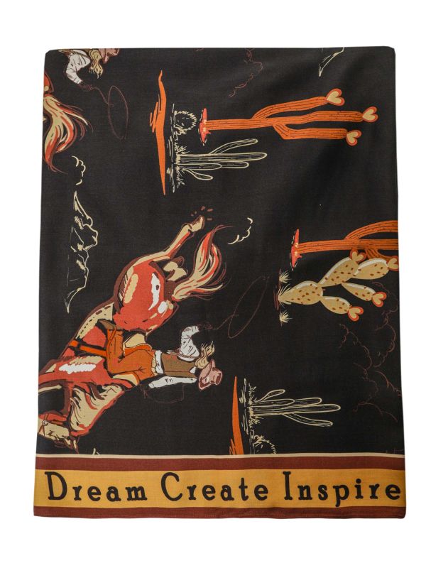 Elevate any look with the Me369 River Rodeo Scarf. A key accessory to revive your outfits, this Me369 scarf is sleek and lightweight–an easy layer to style with your favourite blouses and knitwear. It features the label's rodeo print while the edges are finished with the uplifting "Dream Create Inspire" graphic.
