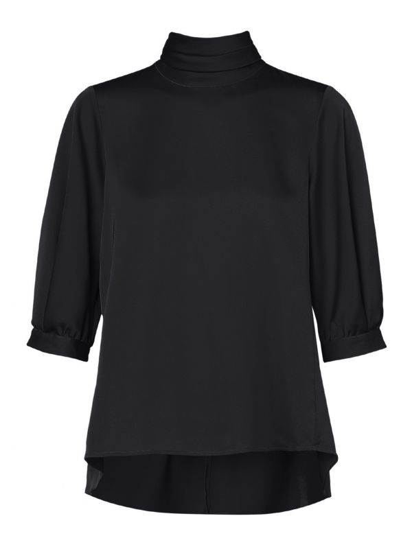 The High Meet Up top is a sophisticated staple piece, effortless to style with a range of separates for all occasions. Crafted in technical satin crepe, this elegant blouse features a high neck with keyhole and button fastening to the back. The top is complete with full inset 3/4 sleeves, satin cuff bands and an A-line body that flares out into a softly draping rounded hem, falling longer at the back.