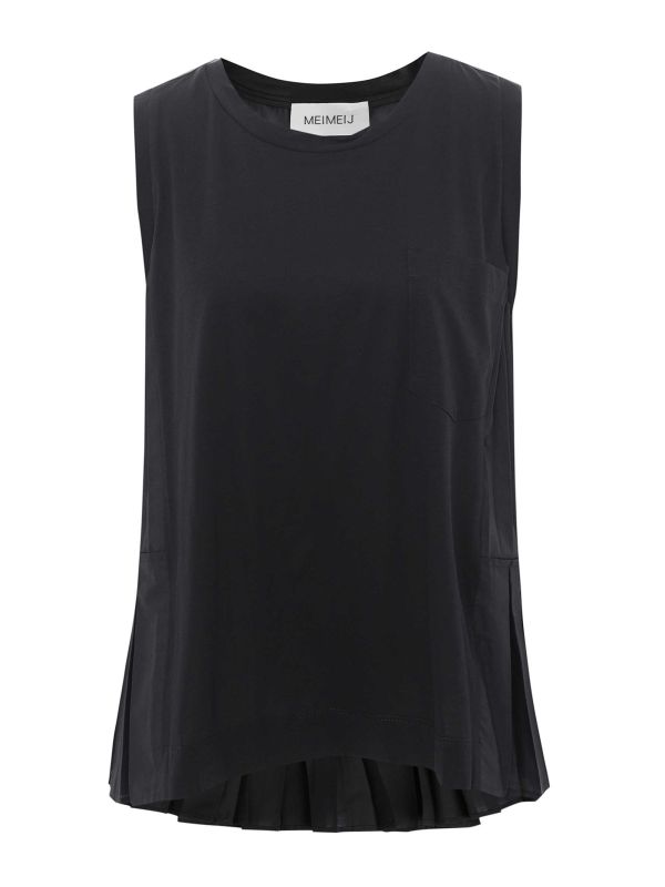 The MEIMEIJ Pleat Back Top is an everyday style elevated. Cut from 100% cotton, this design is sleeveless with a round neckline, a patch pocket on the chest and a shorter hem at the front. This MEIMEIJ top has a delicately pleated back, adding texture and movement as you walk. Dress this versatile piece up or down to suit your plans.
