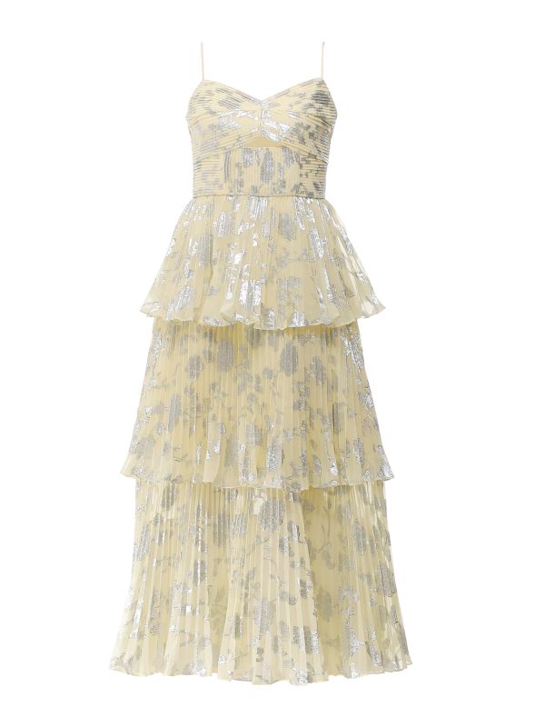 Metallic Jacquard Tiered Midi Dress