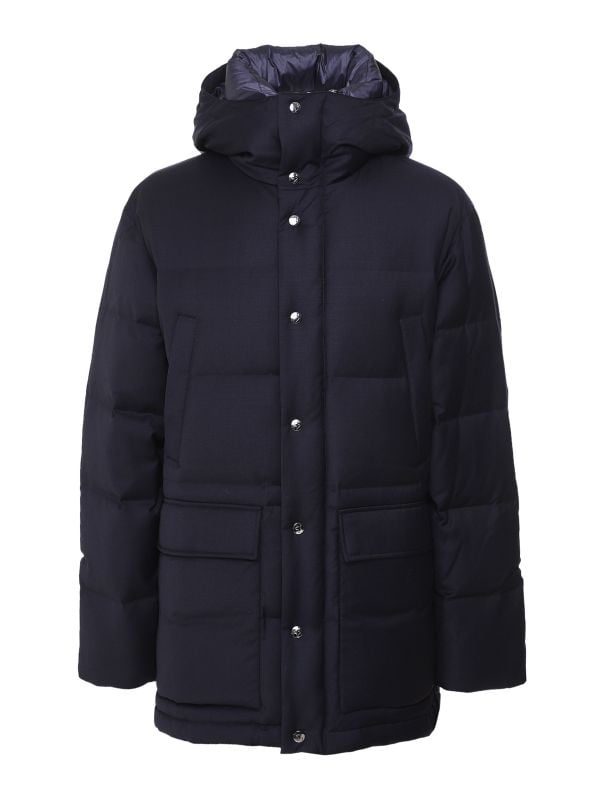 The Montecore puffer jacket has been crafted in a technical extrafine Australian merino that boasts exceptional comfort levels and an elegant aesthetic. Featuring a cosy funnel neck with fixed hood, stud and concealed zip closure and four pocket front, whilst the premium down filling ensures essential insulation against the winter chills.
