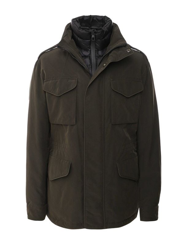 The Montecore utility jacket has been crafted in a technical fabric that boasts exceptional comfort levels and shape retention. Complete with a removable zip bib and premium down filling, the jacket will ensure optimum warmth. Featuring a concealed zip and snap button closure and military-style shoulder epaulettes, whilst the four pocket front makes for ample storage.