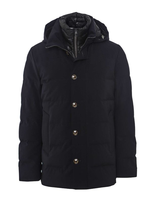 The Montecore water-resistant down jacket is a rugged, well-crafted piece designed for those who value both function and style in cold-weather gear. Its exterior is made from a twill-woven wool blend that’s durable yet refined, offering a water-resistant layer to tackle wet or snowy conditions. Inside, it’s packed with duck down and feather filling, ensuring warmth without the bulk.