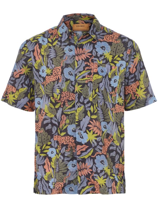 The MOS MOSH MMGBabel Wild Shirt is a relaxed, printed design cut for warm-weather wear. It features a point collar, button-through fastening and a single chest pocket, all set within an all-over botanical and fauna print. Short sleeves and a straight hem create a casual silhouette suited to weekend days and holiday wardrobes. The breathable linen-blend fabric offers lightweight comfort and movement, making it easy to pair with chinos or tailored shorts for put-together summer looks.