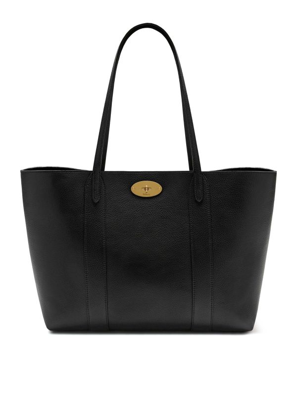 The Bayswater Tote Bag is a spacious, iconic everyday style from Mulberry. Crafted in pebble-grain leather, it opens to a suede-lined interior with a large main compartment and an internal flat pouch embossed with the brand's logotype for essential organisation. The bag fastens with the brand's gold-tone postman turn-lock and is carried on long shoulder straps for easy wear. Ideal for work or travel, it balances practical capacity with signature Mulberry detailing, while a structured base helps maintain form.