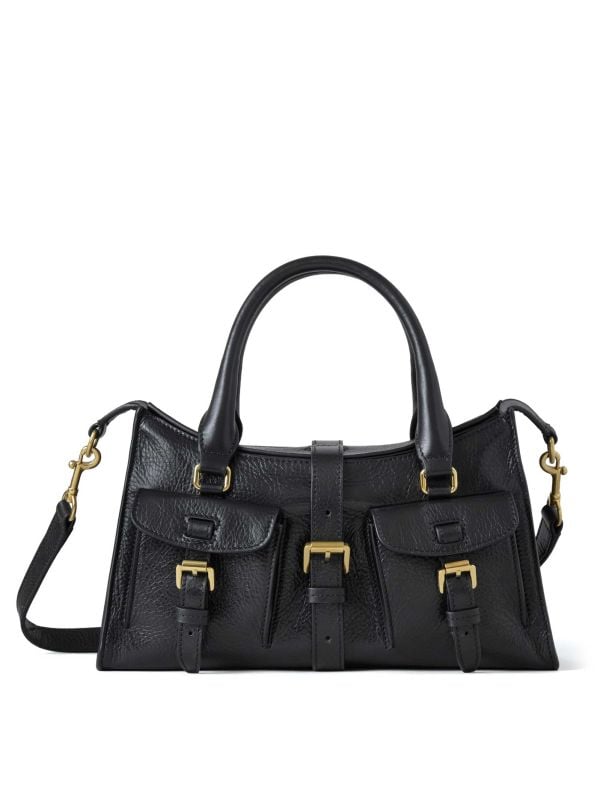 The Small Roxanne Shoulder Bag is a Mulberry design that refines a practical shape with considered detailing. Crafted from leather with a natural grain and high shine finish, it has dual rolled top handles plus a detachable, adjustable shoulder strap for hands-free wear. The front features two flap pockets with buckle hardware and a central strap concealing a magnetic fastening. Inside, a zip pocket sits against the brand’s Heritage Check lining for organised storage. Polished gold-tone fittings and branded hardware complete the piece, offering versatile everyday functionality with a considered finish.