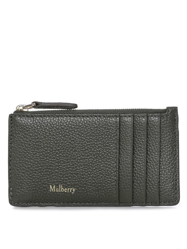 Mulberry's Zipped Long Card Holder is a streamlined accessory for organised essentials. The pebble-grain leather exterior is stamped with a gold-foil Mulberry logo and secured by a zip-top pocket for coins or folded notes. The front offers multiple vertical card slots with a rear slip pocket for quick access, while a leather zip pull and gold-tone hardware complete the practical design. Compact enough for a pocket or small bag, it arrives presented in a branded Mulberry box, making it an easy choice for gifting.