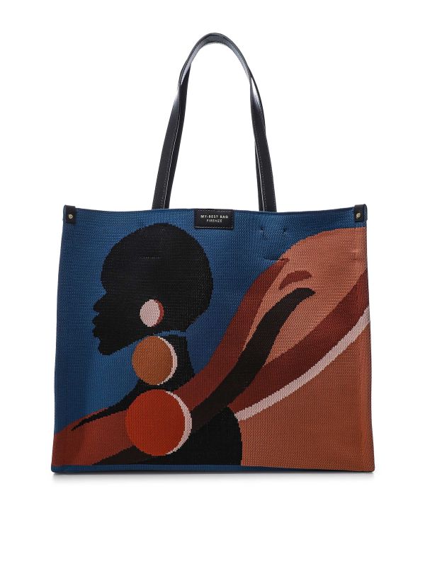 Crafted in leather and fabric, the Venus Africa tote by My Best Bag Firenze is a unique design that will transform your looks. This roomy My Best Bag Firenze tote bag features an African art-inspired print with stylised figures.