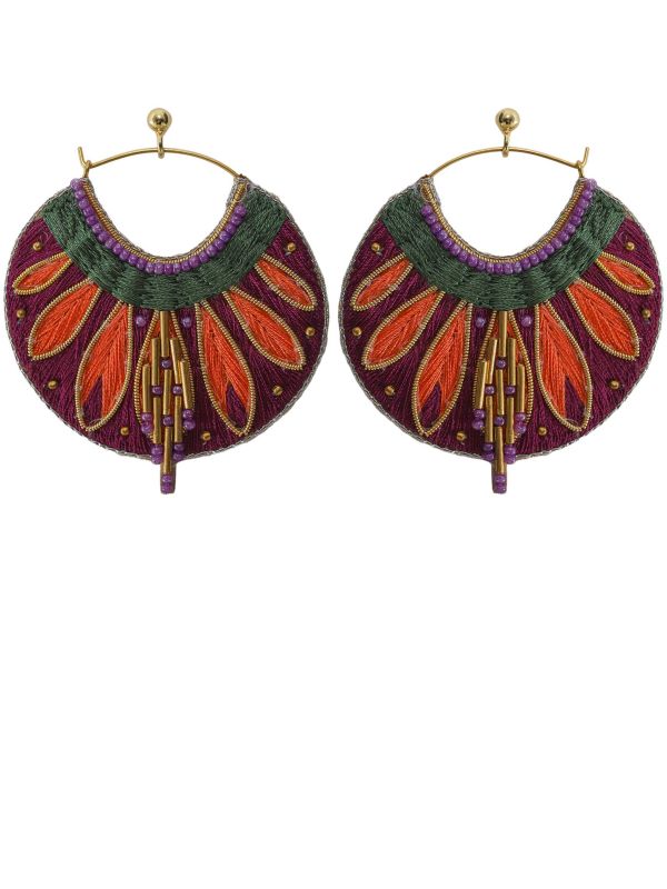 The Apie Classic Hoop earrings are a hand-embroidered style by Nahua. The classic hoops are delicately embroidered with silk thread in a range of bright and bold colours with small beads. They have a large hoop shape complete with a soft leather lining and stainless steel hooks. These Nahua earrings are a statement style that will elevate any outfit.