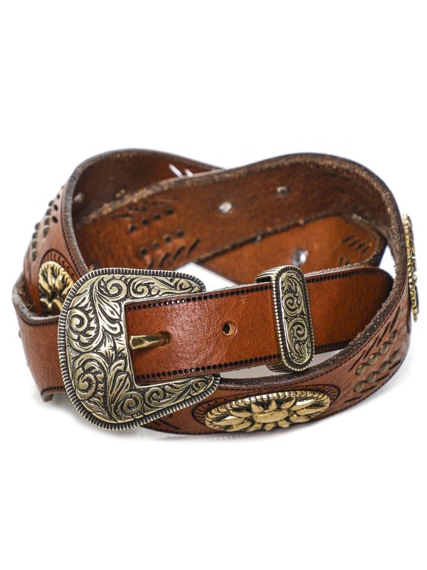 Elevate your accessories this season with the Nanni cowgirl belt. Expertly crafted in Italy using the finest leather, this stylish belt boasts a versatile tan colourway and is complete with a western buckle, studded details and laser cut etchings for a unique finish. Team with your favourite jeans or shorts for a cool, casual look.