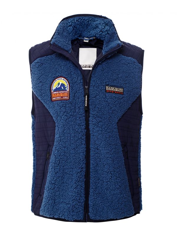 Invest in the Napapijri Solda vest for a warming layer ideal for the winter months. Engineered in sustainable recycled materials, the gilet showcases mixed curly fleece and shell panelling offering a sporty aesthetic. Featuring a cosy funnel neck, zip-through fastening and zippered side pockets, with the label's signature badges adorning the chest for an iconic finish.