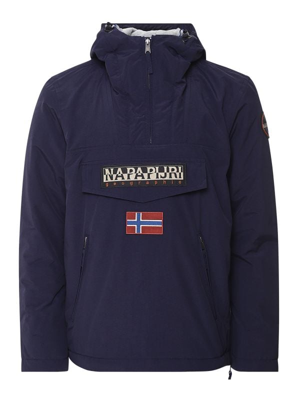 Stay protected this season with the Napapijri Rainforest Pocket anorak. Engineered in a PFC free water-resistant shell, the jacket has been padded with down-free filling for a sustainable approach to insulation. Featuring an adjustable hood with half zip fastening, side zipper and taped seam construction, whilst the three pocket front makes for optimum functionality.
