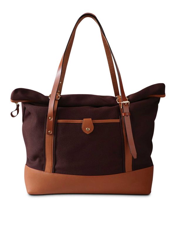 The Nappa Dori Beckett Fold-Up Tote Bag is a functional and stylish design made for effortless travelling. Handcrafted from premium dark brown canvas with leather handles and accents, this Nappa Dori tote bag has a signature look that goes with almost any outfit. It has plenty of storage with multiple pockets inside and out, finished with a leather base reinforced with studs for structure and stability.