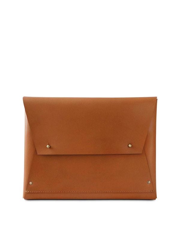 Carry your laptop in style with the Nappa Dori Leather Wrap Sleeve 13". Designed to hold a 13" MacBook, this Nappa Dori laptop sleeve is the perfect piece to ensure protection while on the move. It's beautifully handcrafted from authentic leather and features elegant brass hardware including a brass stud fastening, finished with branding on the back.
