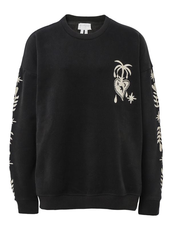 The Embroidered Crew Sweatshirt by Never Fully Dressed is an oversized sweatshirt decorated with embroidered motifs across the chest, back and sleeves. It has a classic crew neck, dropped shoulders and ribbed cuffs and hem for a considered finish. Cut for a relaxed, roomy silhouette, it layers easily over shirts or tailored outerwear. Wear it with slim Pants or leggings for casual weekend dressing or to add decorative detail to everyday outfits.