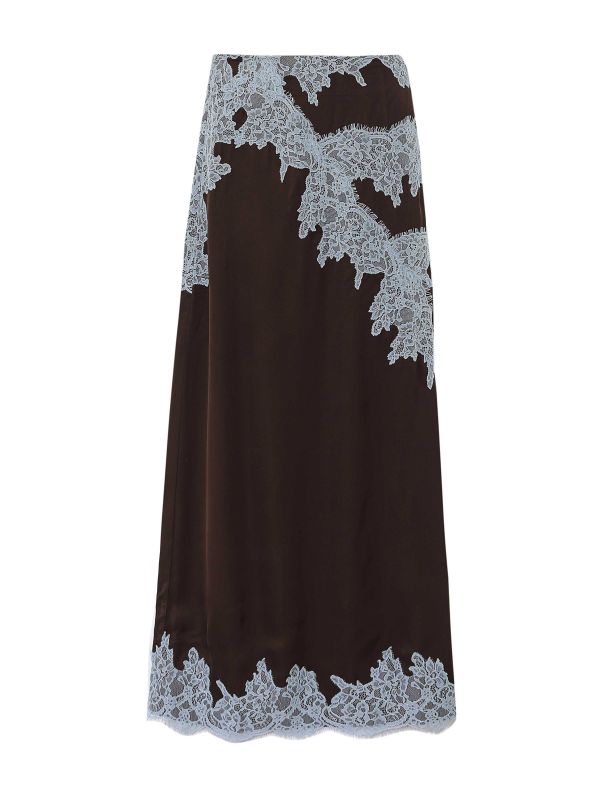 The Lily Skirt is a fluid, ankle-grazing silhouette from Never Fully Dressed. It features sweeping lace appliqué across the body and a lace-edged hem for a delicate, layered look. Cut from smooth Rayon for a soft drape, the skirt falls long for graceful movement and pairs easily with knits or tailored tops for day-to-evening styling.