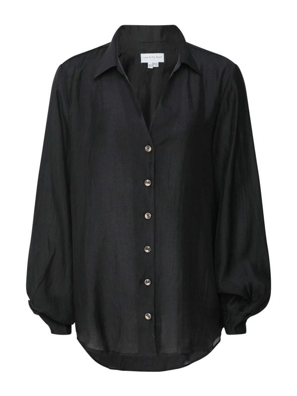 The Never Fully Dressed Miley Shirt is a fluid button-through shirt with a classic collar and softly gathered long sleeves that finish in narrow cuffs. It fastens with tortoiseshell-style buttons down the front and falls to a gently curved hem, offering options to tuck or wear loose. Cut for a relaxed silhouette, it partners with tailored trousers or denim for refined everyday dressing. A light, breathable layer, this shirt brings soft movement and versatile styling to your rotation.