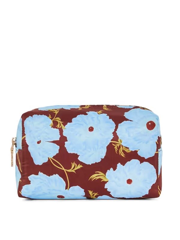 The Never Fully Dressed Poppy Reversible Make Up Bag is a structured, boxy pouch designed to keep cosmetic essentials organised. The reversible design offers two looks in one, with a contrast printed lining that can be used as an alternate exterior. A full-length zip with gold-tone hardware opens to a roomy interior that stores brushes, palettes and daily touch-ups. Compact enough for a tote yet capacious for travel, it works equally well on a dressing table or in your luggage.