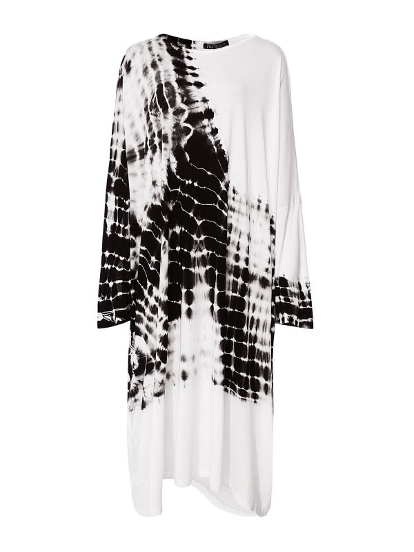 Get a cool, laid-back ensemble this season with the NU tie dye dress. Sustainably crafted in bamboo, this relaxed fit dress features a round neck, dropped shoulders and long sleeves. The dress is finished with a statement tie dye print throughout for a stylish summer look.