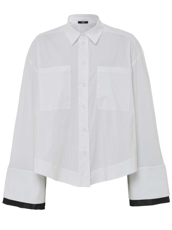 The Contrast Sleeve Shirt is a staple piece from NU London. Made from a cotton blend, this classic white shirt has a collar, button closure and two front pockets, elevated by contrasting black lining to the cuffs to add a statement detail. Style this shirt with everything from jeans to skirts and wear it everywhere from the office to the bar.