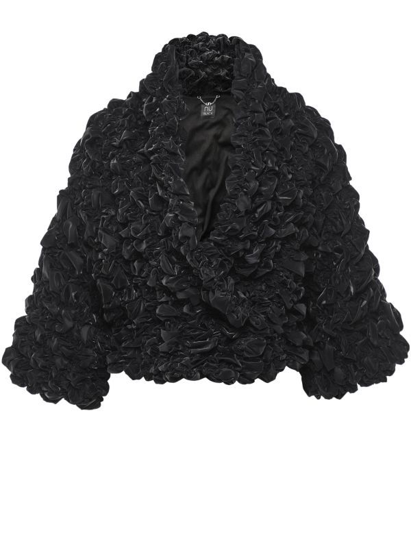Get a chic statement look with the NU London crinkle jacket. This distinctive jacket boasts a crinkle design and is complete with a concealed snap button fastening, stand collar and drawstring hem.