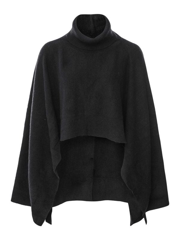 NU London's drape knit is a poncho style, offering an alternative to your jumpers this season. Knitted from an extra soft fabric, this NU London poncho features a cosy ribbed roll neck and a cropped front, perfect for experimenting with layering. The back has a classic cape style that gives it shape and freedom of movement.