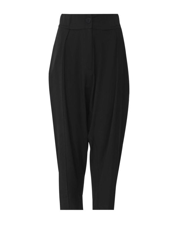 The drop crotch gives a loose, draping effect for an overall relaxed look, while the barrel leg is great for pairing with chunky boots. Complete with side pockets and flap pockets at the back.