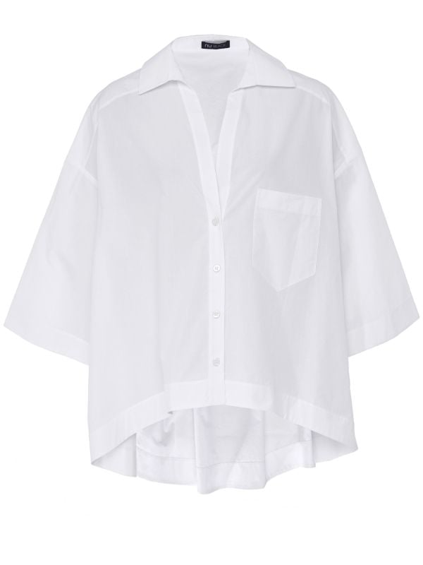 Get a relaxed everyday look in this NU oversized shirt, crafted in cotton for a lightweight feel. This laid-back shirt is designed for an oversized fit and features a relaxed collar, button down fastening, single chest pocket and 3/4 sleeves. The shirt is complete with a dramatic stepped hem and two pleats to the back.