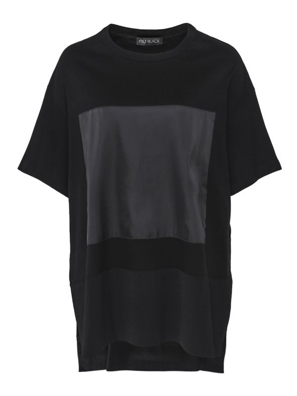 The NU oversized t-shirt is a laid-back addition to your everyday wardrobe, expertly crafted in a soft stretch fabrication for elevated comfort and style. This relaxed fit top features a rib-knit crew neck, dropped shoulders and short sleeves, with a stretch rib hem and side slit details. A distinctive satin square detail to the front provides a contemporary finishing touch.