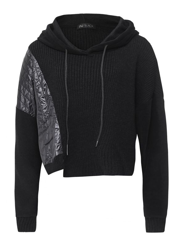 The NU rib knit hoodie is an effortless piece for your off-duty wardrobe. Crafted in a soft fabric with an elegant rib-knit construction, this laid-back staple is great for teaming with tapered pants and ankle boots. It features a drawstring hood, dropped shoulders and ribbed cuffs, with a contrast panel detail and asymmetric hem for a contemporary finish.