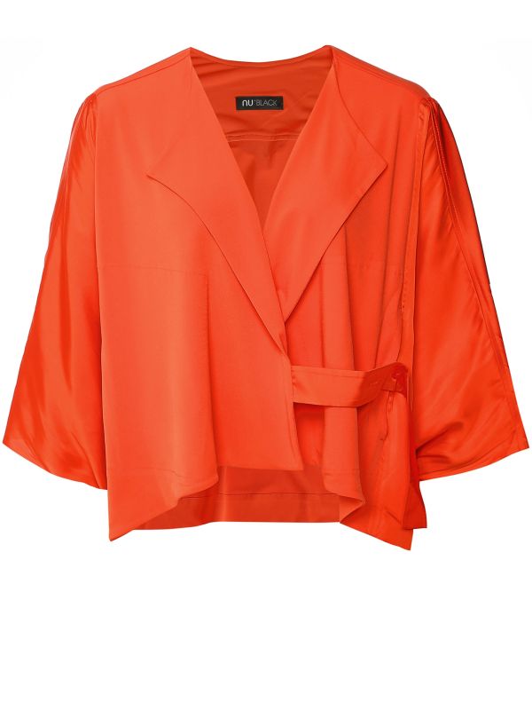 Experiment with layers this season with the NU London belt jacket. Elegantly crafted in lightweight stretch fabric, the jacket offers a flowing satin-like handle. Featuring a statement collar and double breasted belt fastening, whilst the loose 3/4 sleeves and cropped waterfall hem make for a signature NU silhouette.