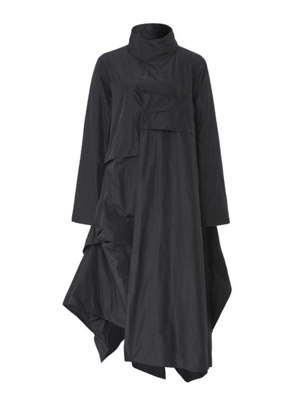 This NU London taffeta trench coat is a contemporary take on the traditional trench coat. Crafted from a taffeta fabric, the coat has an asymmetric cut with a stand up collar and a floaty, asymmetrical hem that generates an oversized silhouette. Throw it on over any outfit as this coat will steal the limelight.