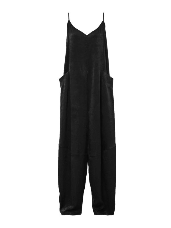 The Velvet-Look Satin Jumpsuit is a unique design from NU London. This jumpsuit is crafted from a velvet-look satin fabric with an elegant shine. Cut for a wide leg and an oversized silhouette, it features a low V neckline, adjustable spaghetti straps and side pockets. With its comfortable fit, this jumpsuit is a super stylish, easy-to-wear piece.