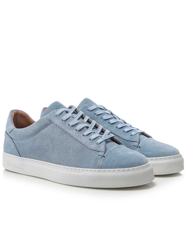 The Oliver Sweeney Almada Perforated Calf Suede Sneakers are a low-top lace-up crafted from soft suede with perforated side panels for added breathability. Featuring a suede toe cap, tonal laces and embossed branding on the tongue and outer sole, mounted on a rubber cupsole with textured tread. The interior is lined in tan leather for comfort and support. Ideal for city wear, they offer subtle detailing and reliable grip, pairing equally well with smart tailoring or relaxed weekend separates.