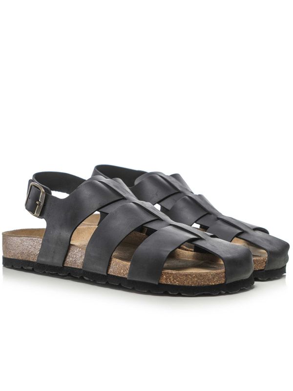 The Oliver Sweeney Astorga Leather Fisherman Sandals fuse a woven fisherman-style upper with a contoured cork footbed for supportive everyday wear. An adjustable metal buckle secures the rear strap while the soft lined footbed adds comfort during prolonged use. Finished with a patterned rubber outsole for dependable grip, these sandals balance practical construction with considered detailing. The open toe and interlaced straps provide ventilation and a structured fit, making them a versatile option for warm-weather dressing. Ideal for casual city days or relaxed weekend wear.
