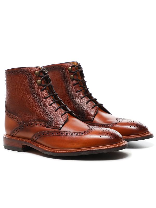 The Oliver Sweeney Blackwater boots are an elegant yet robust option ideal for winter dressing. Exceptionally crafted in premium antiqued calf leather, the boots deliver superior quality. Featuring a lace-up fastening, wing-tip medallion toe and classic hole punch trims, whilst the leather sole is complete with cleated forepart promising a non-slip tread.