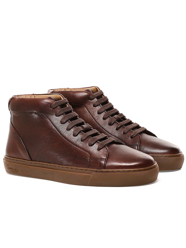 The Oliver Sweeney Laxey trainers combine the comfort of a sneaker with refined formal elegance. Expertly crafted in premium tumbled leather, the sneakers offer a soft and supple feel. Featuring a hi-top silhouette with lace-up fastening and cemented rubber cupsole, whilst the padded collar lends added comfort.