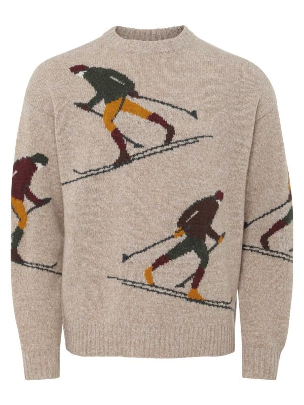 The Oliver Sweeney Claggen jumper is crafted from warm lambswool in a 7-gauge knit, perfect for keeping cosy when the temperature drops. Designed with a playful skiers pattern, it brings a touch of character to a classic winter knit. The crew neck and chunky ribbed trims add a relaxed, casual feel, while the regular fit makes the Oliver Sweeney jumper an easy layer to throw on with jeans or chinos for laid-back seasonal style.
