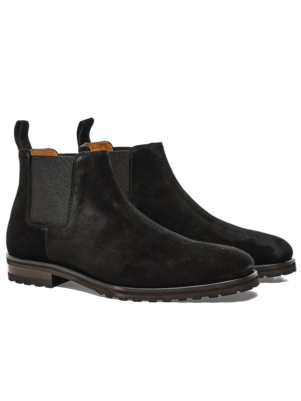 The design features elasticated gussets for a snug fit, complemented by an ankle pull loop for ease of wear. The cleated sole ensures superior grip and durability, making the Oliver Sweeney Chelsea boots not only a statement of style but also a practical choice for varied terrain. Whether paired with a suit or casual wear, these boots exemplify sophistication and craftsmanship.