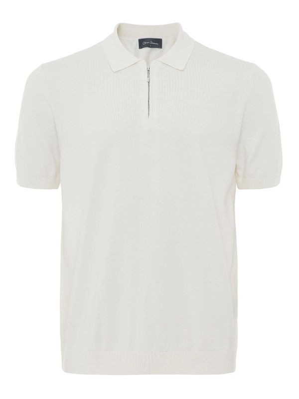 The Oliver Sweeney Netherfield Quarter Zipper Polo is a knitted short-sleeve polo finished with a neat shirt collar and a quarter-length metal Zipper. Designed with ribbed cuffs and hem, it sits in a regular silhouette that works equally well layered or worn solo. Crafted from 100% cotton for breathable comfort, the fine knit offers a polished surface and a lightweight drape. Pairs well with tailored Pants or relaxed shorts for different looks.