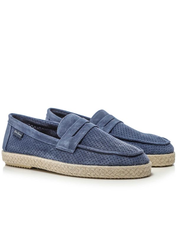The Oliver Sweeney Terrassa Perforated Suede Espadrille Loafers reinterpret a penny loafer silhouette with a perforated suede upper and a jute-wrapped midsole. Perforations enhance breathability while the penny strap retains a smart-casual aesthetic. A rubber outsole with patterned tread provides grip and durability. Versatile for resort or city breaks, they complement lightweight Pants or tailored shorts and maintain a low-profile silhouette that keeps outfits neat.