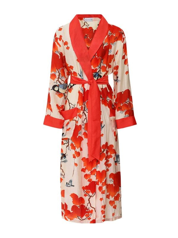 A delicate design, the One Hundred Stars Acer Gown is an essential for both lounging and dressing up. Created from One Hundred Stars' signature blend of modal and cupro, this elegant evening gown boasts a beautiful foliage print displaying the Japanese maple tree. This style has a fold-over collar, self-tie belt, long loose sleeves and two spacious front pockets.