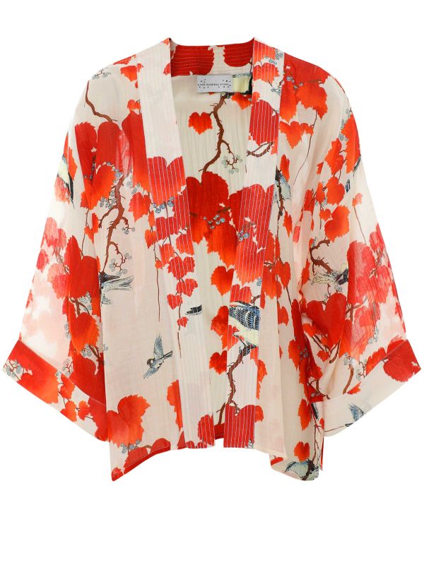 This One Hundred Stars kimono is expertly made from the label's custom modal-cupro blend. It's a short kimono decorated with a vibrant red acer print and embroidery on the lapel, finished with traditional wide 3/4 sleeves.