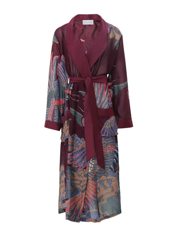Indulge in the beauty of the Crane Plum Gown by One Hundred Stars, featuring a stunning print that transforms your nightwear collection. Designed for comfort and style, this gown is perfect for lounging or unwinding after a long day. Its flowing silhouette and intricate detailing make it a delightful addition to your nightwear essentials, ensuring you feel effortlessly chic while relaxing at home.